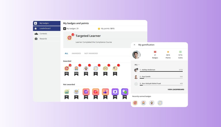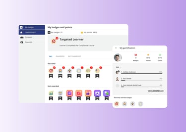 Incorporate game mechanics like points, badges, levels, and leaderboards to keep learners engaged. Encourage progress, competition, and mastery. All while boosting retention and completion rates.