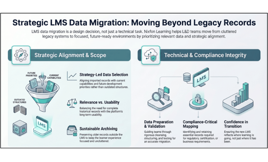 At Nixfon Learning, we understand that decisions around historical training data are often more complex than they first appear. While it may seem reassuring to bring everything into a new LMS, we know that a thoughtful, strategic approach creates far greater long-term value for both learners and the organisation.
